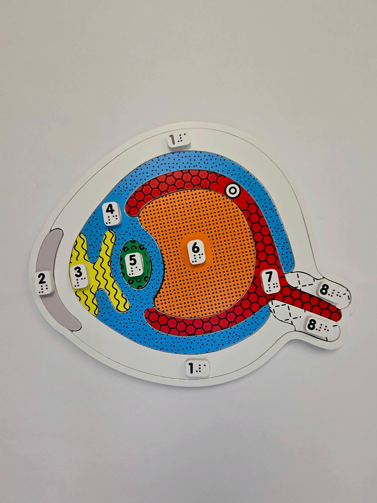 - A high-contrast PVC puzzle with numbered, textured, and color-coded pieces.